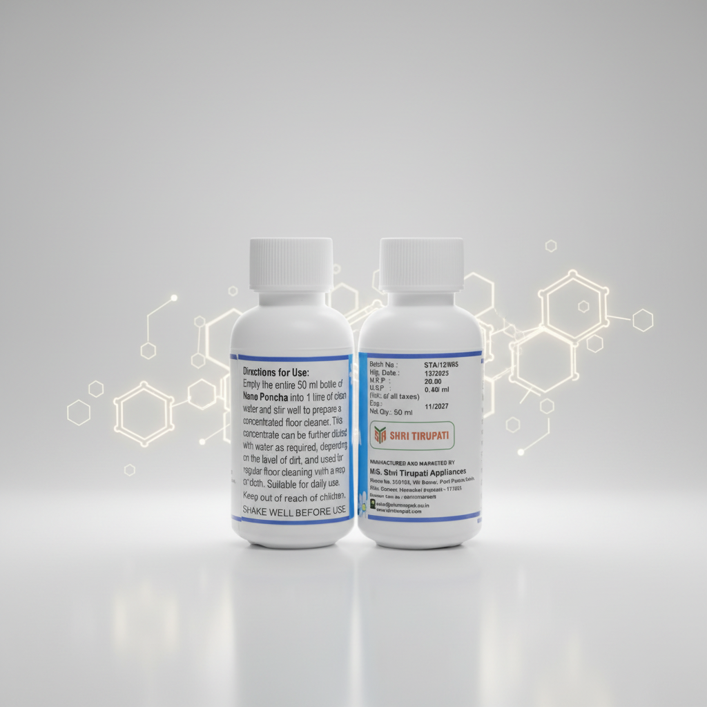 Shri Tirupati Nano Paunchha is a concentrated liquid floor cleaner that can be diluted as required based on the level of dirt and cleaning needs. Ideal for everyday floor cleaning with a mop or cloth, it delivers consistent cleanliness while leaving floors refreshed and well maintained. Manufactured under quality-controlled standards, Nano Paunchha reflects Shri Tirupati’s commitment to reliable and effective home care solutions.