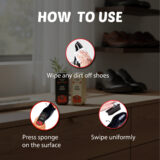Ensure the shoe surface is free from dust and dirt before use. Press the sponge to release the liquid